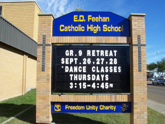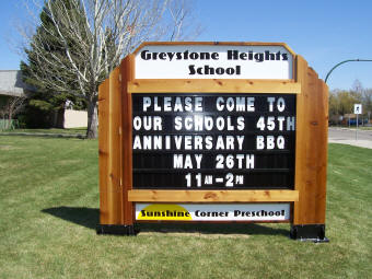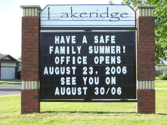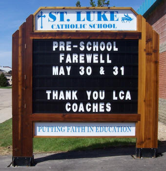We are pleased to announce that we have secured the distribution rights to a unique product called the Image Sign. What makes this product unique is the patented, changeable copy, tamper proof cartridge system which allows you the ability to do all message changes indoors out of the harsh elements, while preventing unwanted tampering. We have installed our first sign in Saskatoon at St. Augustine School / Parish in November 2003, they were happy with the professionalism and extremely pleased with the sign.